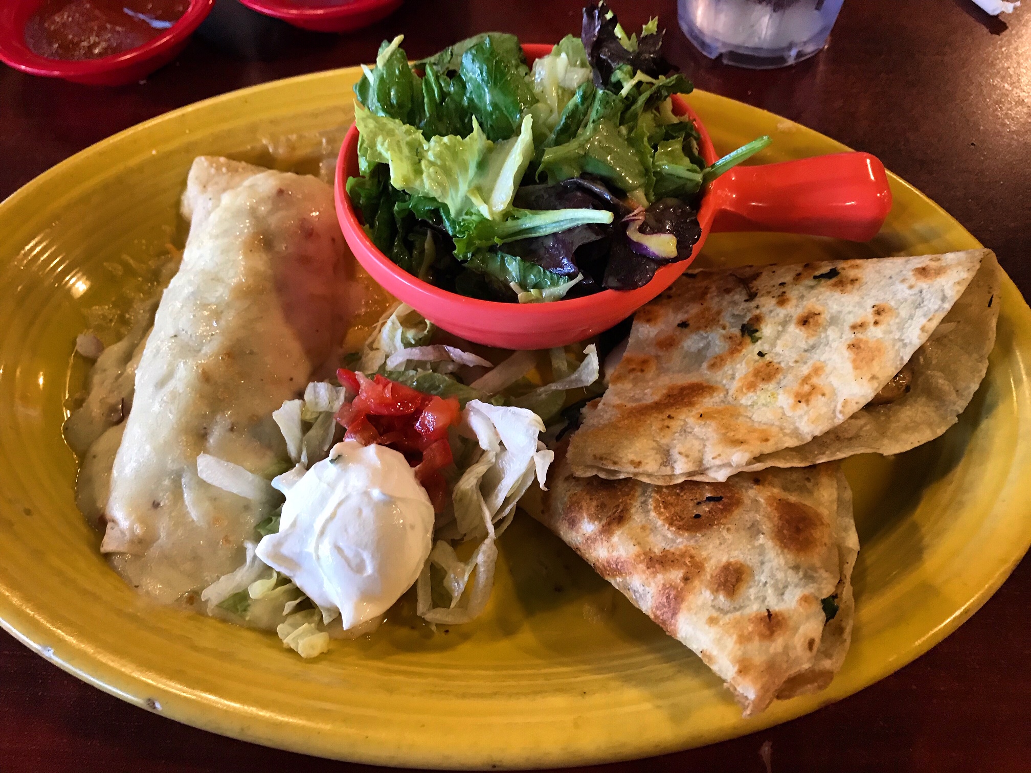 A family style Mexican restaurant with a large menu, friendly staff, and some refreshingly different vegetarian options. They have a delicious quesadilla that makes quesadillas worth ordering again.