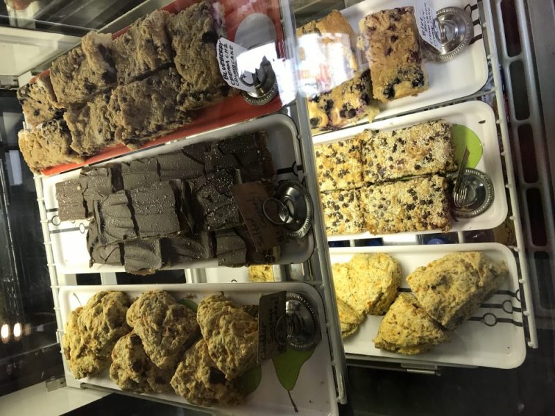 The vegan baked goods are amazing and are recognized nationally. Sweet pastry options include cupcakes, bundt cakes, bookies, blondies, bars, muffins, scones, cinnamon rolls, pop tarts, croissants and more. Mud Pie frequently has savory baked options like cheese, sausage and eggs biscuits, cheese scones, bagels and kolaches.