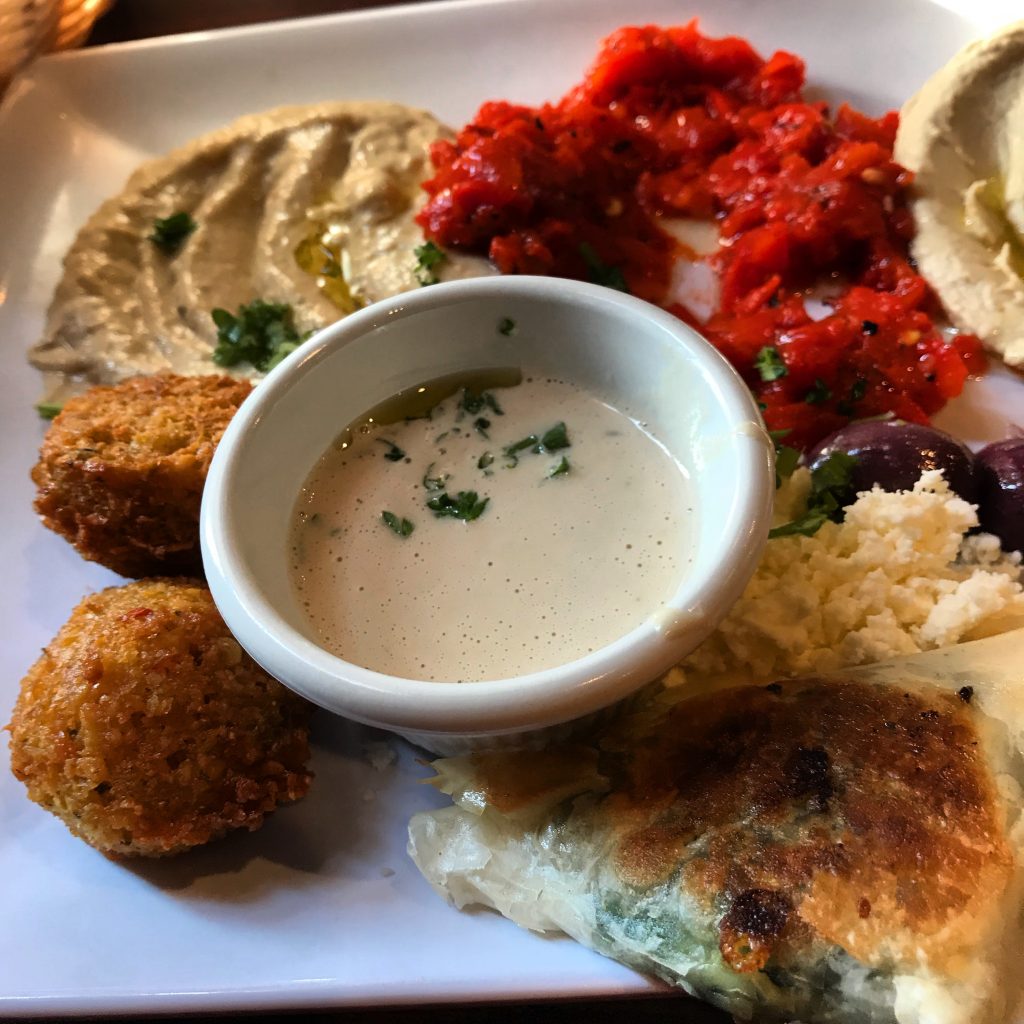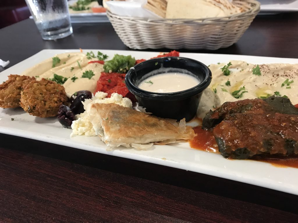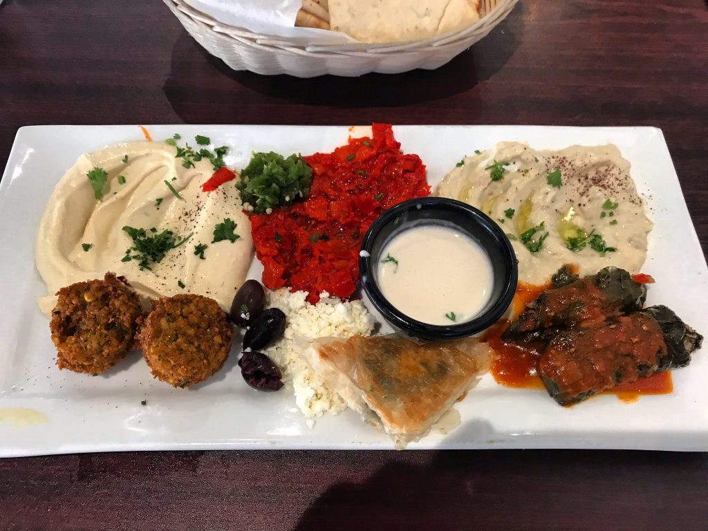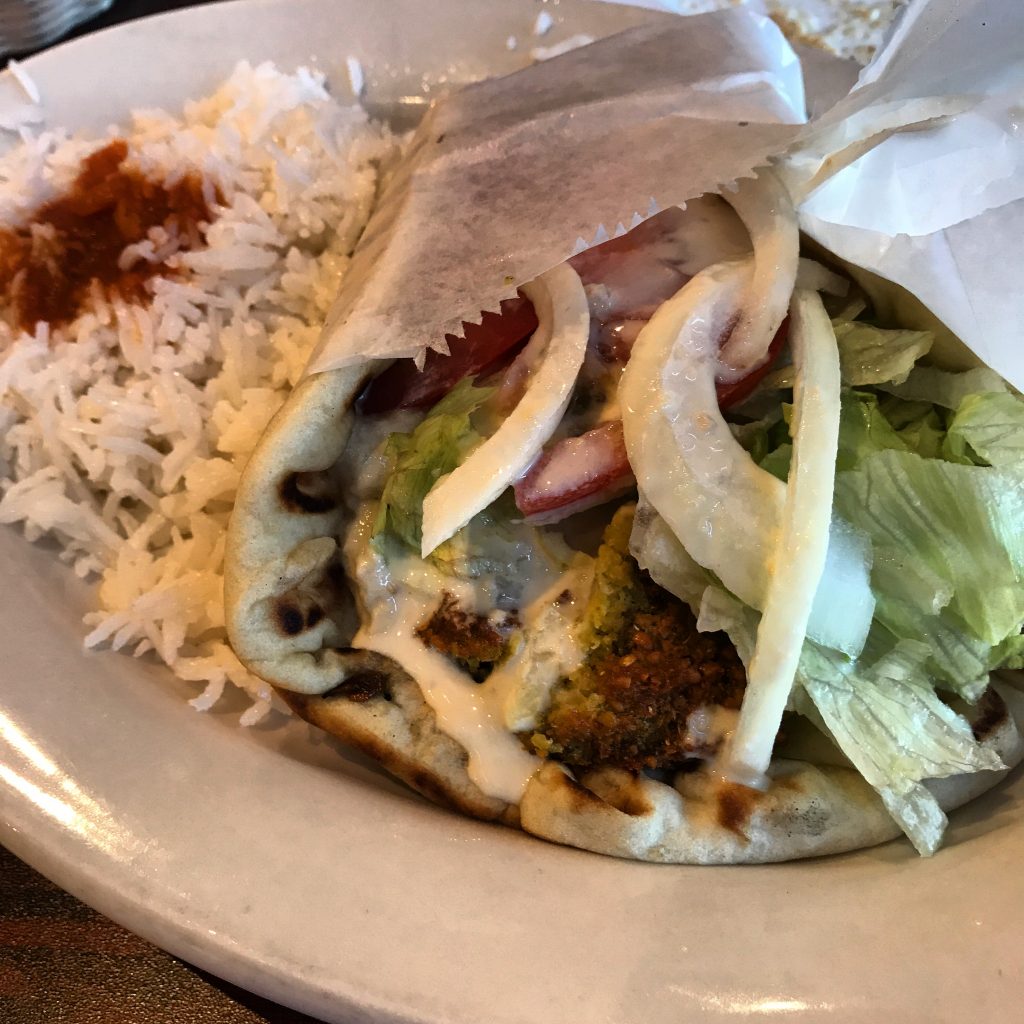 Kansas City has so many excellent Middle Eastern restaurants, that it’s hard to single out one. The current favorite sit down Middle Eastern restaurant for Dining Companions 1 and 2 and myself, is the Aladdin Cafe on West 39th Street. It often is our choice for lunch. Dining Companion #2 calls the Aladdin Café “the best Middle Eastern restaurant in Kansas City right now.” All of us like the ambiance, the dishes, the flavors, and the service. We especially like the vegetarian and vegan options.