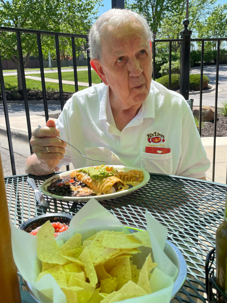 My father was my dining companion this day. He had a special with a meat burrito or enchilada. Probably pork or chicken. I don’t remember, but some of you may be able to identify the format in the picture below. He enjoyed his platter.