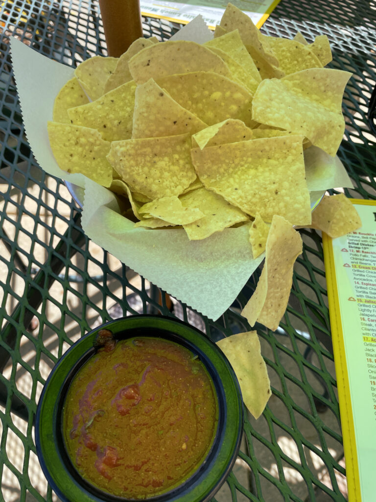Your reviewer, enjoying his favorite food ritual, chips and salsa before the main course