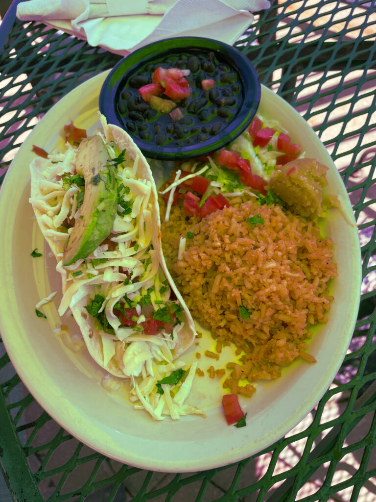 I think I ordered the “Fish Taco Del Rio” lunch special. That included a grilled tilapia taco, with toppings, black beans, and rice. In my opinion, the toppings are an integral part of a restaurant fish taco. The fish is important, but if I’m paying over $10 for a platter, there had better be veggies and sauce on the taco. I really enjoyed this fish taco. Presentation was nice, fish tasted great, and the veggies were the right mix. With the rice and black beans, this platter filled me up.