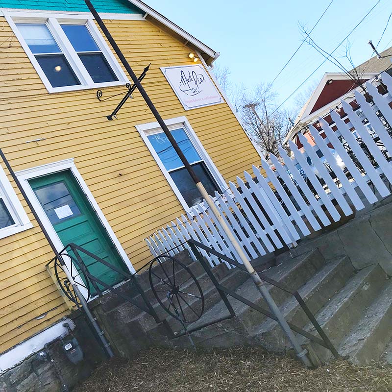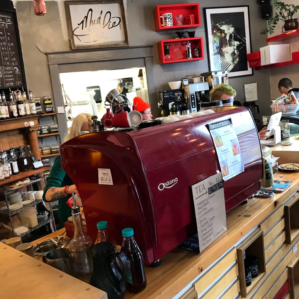 One of the places I’ve missed the most during the pandemic is Mud Pie on 39th Street in Kansas City, Missouri. This vegan bakery and coffee house has long been a favorite place to work, take kids for treats and hot cocoa, listen to a band, look at art, or have meetings with friends. The huge house that houses Mud Pie has been several coffeeshops over the past twenty years, but Mud Pie has become an institution there.