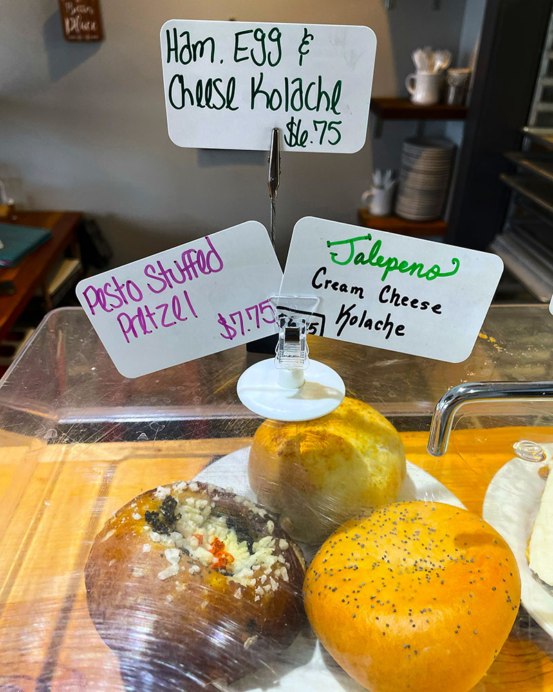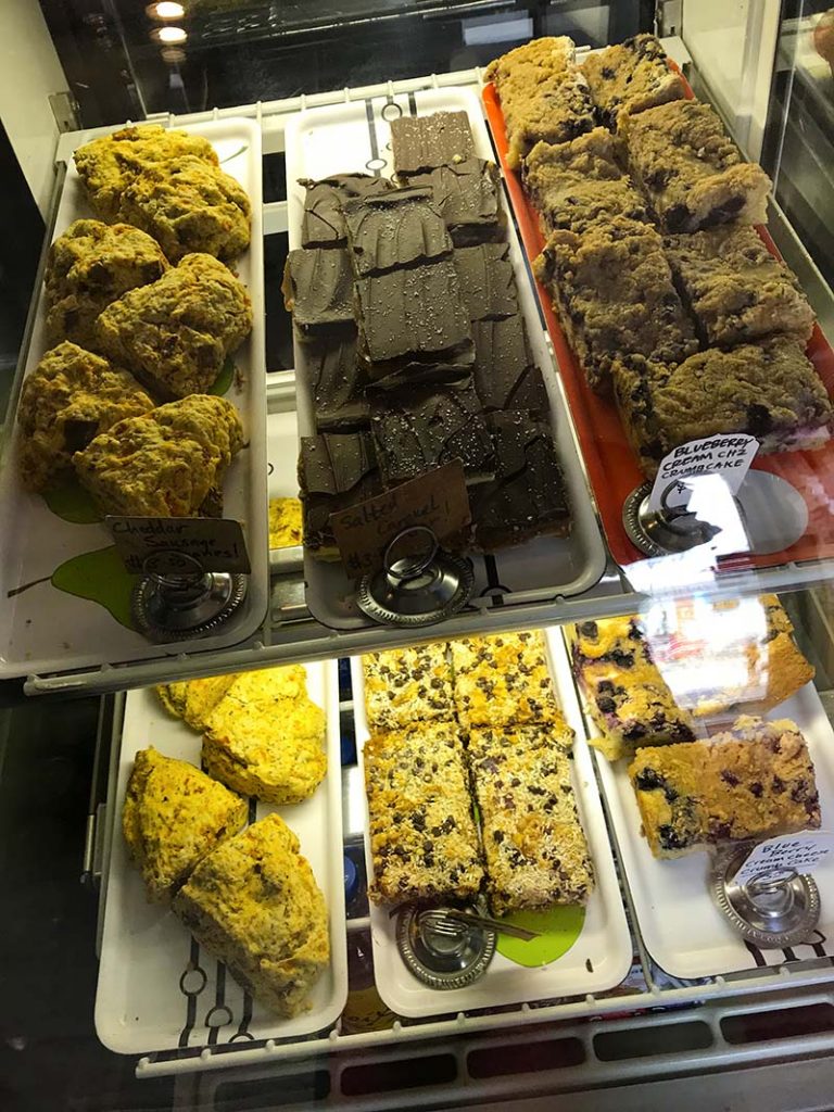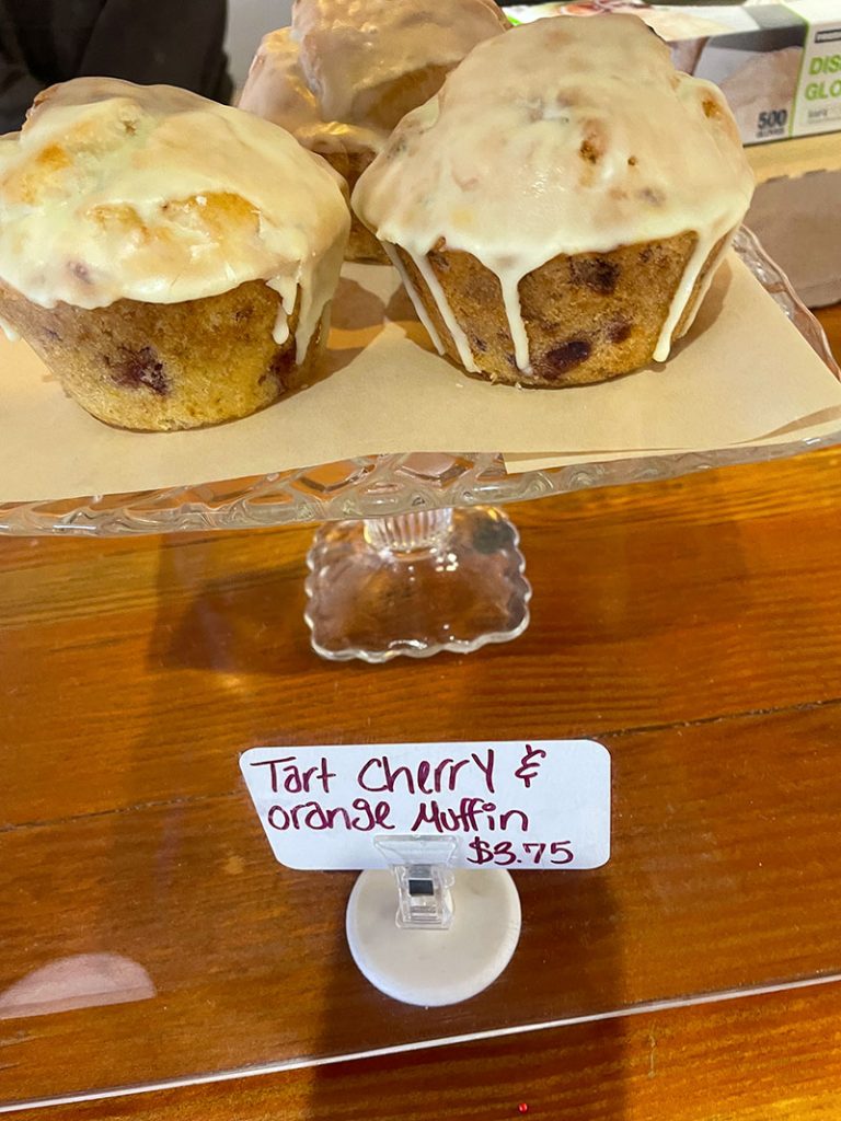 This will be a bit of a photo essay quick review, but before we get to the pictures, let’s talk about the bakery part of Mud Pie. Mud Pie’s selections change daily, so be prepared for that variation, but they tend to have common formats like scones, muffins and cookies. All items are vegan. This week featured menu items include Cheddar Sausage Scones, Pumpkin Cream Cheese Swirl Muffin, Strawberry Poptart, Strawberry and Cream Crumb Cake, Mini Double Chocolate Donut, and Tart Cherry & Orange Muffin.