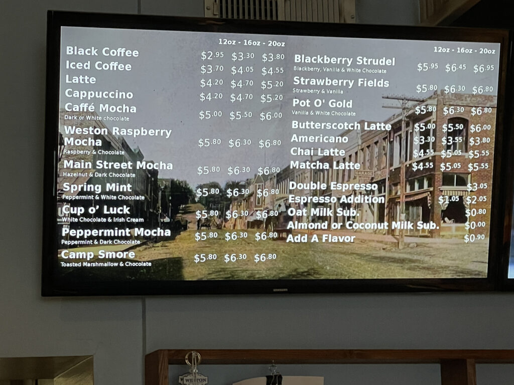 I visit Weston, Missouri on a frequent basis. One of the gems I’ve discovered there is the Weston Coffee Roastery. I drop in for a mocha on about half of my visits. I really love their peppermint mocha, probably the best I’ve had in the Kansas City area. You can find the coffee shop on Main Street, in the historic part of Weston.